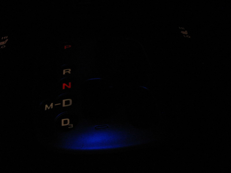 Blue ambient lighting on the gear shifter