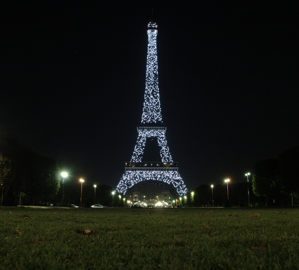 Every hour they flash white lights all along the tower, and the very last hour (1am) they turn off the yellow lights so all you see is its twinkly silhouette